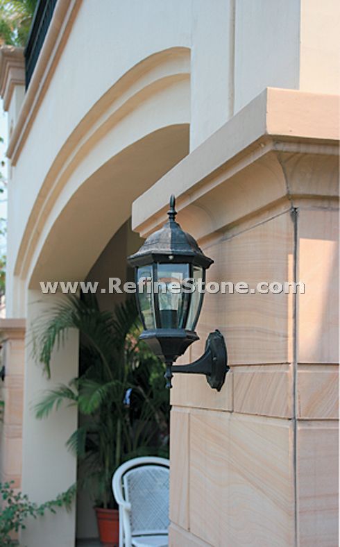 Natural sandstone is a sedimentary rock composed of mainly quartzes so it is often called quartz sandstone. In general, the sandstone has strong resistance to weathering. Iron content contained in sandstone formation contributes to common reddish colors. Natural sandstone was formed in in-land rivers or lakes, so it may contain certain visible fossils patterns. The most popular finish for cut sandstone is honed (matte) or raven, depending on the different applications. Sandstone can be quarried in large blocks and is commonly used in the architectural project where large scale exterior decoration is needed, e.g., bench, vase archway. Sandstone can also be used to make columns, fireplaces, pavers and wall bricks.