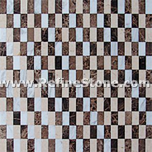 A set of marble or other stone mosaics in proper mosaic designs have broad applications. More and more mosaic floors, mosaic ceilings, mosaic walls and outdoor mosaic paving are seen in modern building construction projects. Refine Industrial Co.,LIMITED designs and produces hundreds of beautiful styles of the stone mosaics, including marble mosaic, granite mosaic, onyx mosaic, travertine mosaic and mixed stone mosaic, in the form of stone mosaic pattern, marble mosaic medallion, marble mosaic tiles, stone mosaic arts and stone mosaic border. All our stone mosaics are mounted on sheets and ready for installations. Our stone mosaics are fully customizable in dimension, chip color, chip size and chip shape. We have large production capacities for the production of stone mosaic items. Special discounts on large orders of all stone mosaic products.