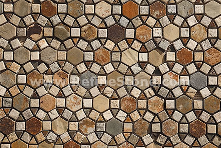 Mosaic and pattern are broadly used for indoor decoration and bath room etc.  China Refine Industrial Co.,LIMITED provides the FIRST GRADE quality slate mosaic , slate border and slate pattern.